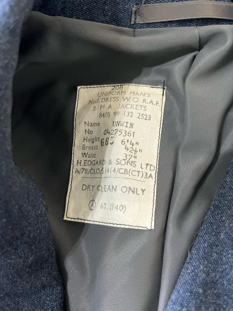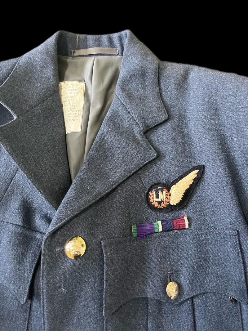 This is a RAF No.1 Dress Jacket with its lower button missing and the Load Master insignia being damaged, around the left cuff there is some fraying otherwise the rest of the tunic is in nice condition with its belt. Approx. size 40" chest and 20" under the arm.