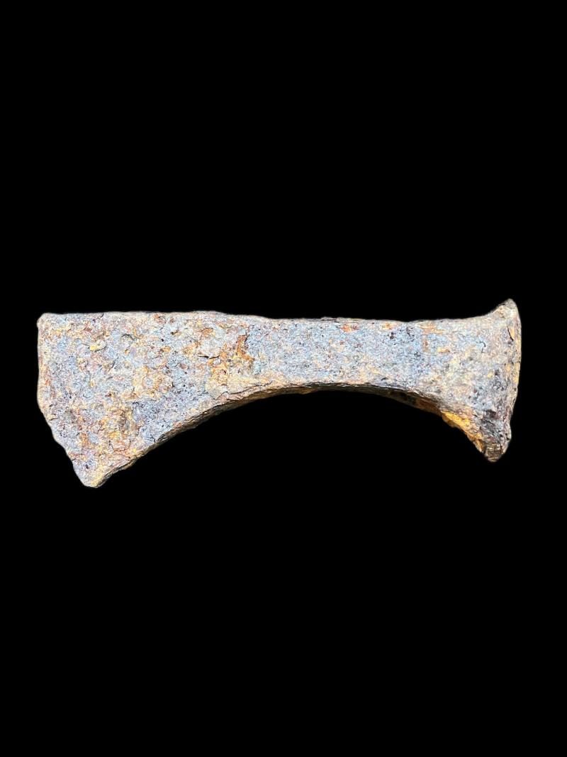 This is a nice 8th to 10th Century Viking Battle Axe head with a curved blade, which measures about 18cm long. Found around York towards Monks Cross area.