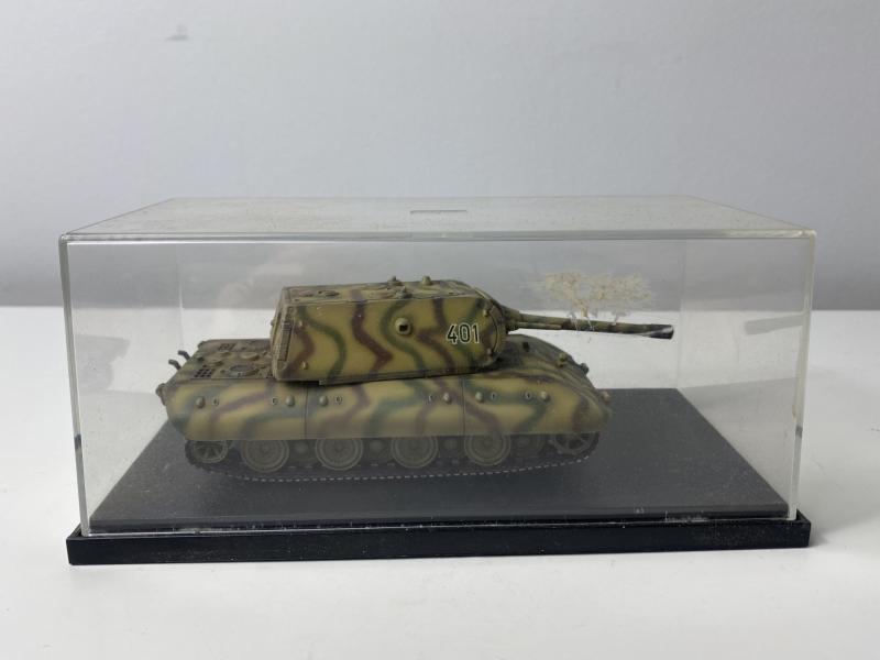 This is a cool WW2 German heavy tank E-100 model in its box, Approx. 7cm long, 8cm in height and 8cm wide. This is not period made.