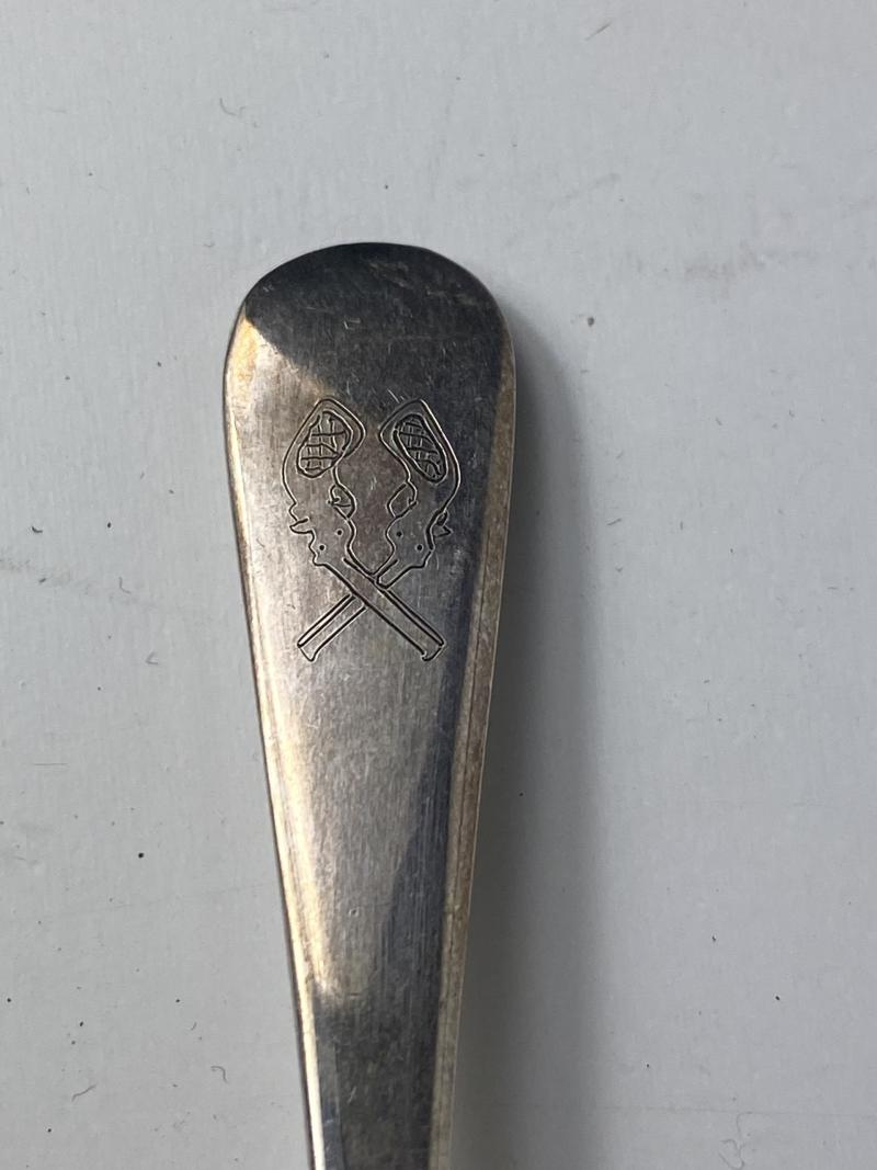 This is a nice silver plated spoon with a set of pistols on the handle.