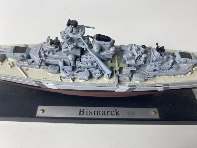 This is a nice model of the WW2 German Bismarck, this model has its stand, Approx. 20cm long. Please note this is a model.