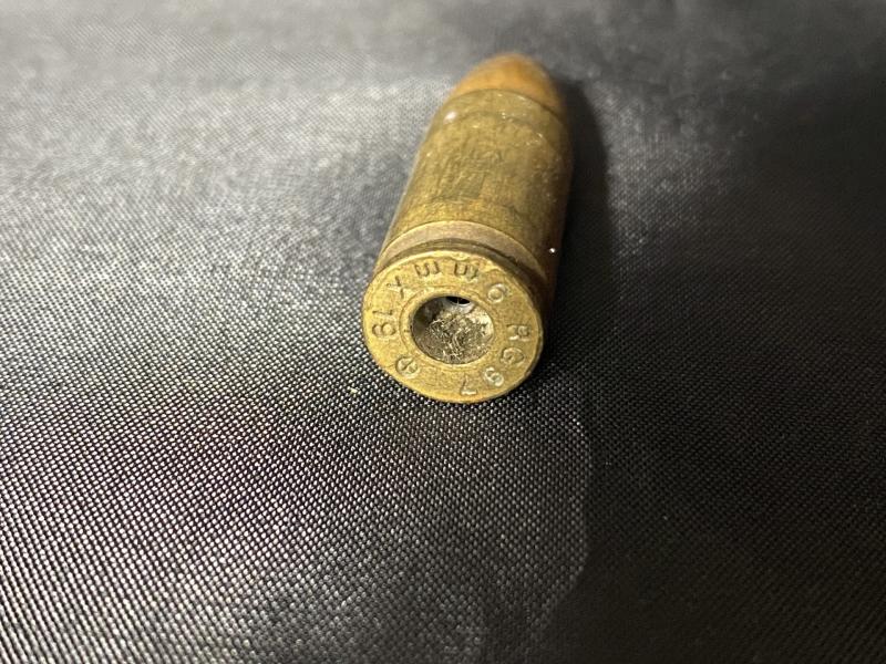 This is a 9mm round which is missing its primer (inert). UK sales only.