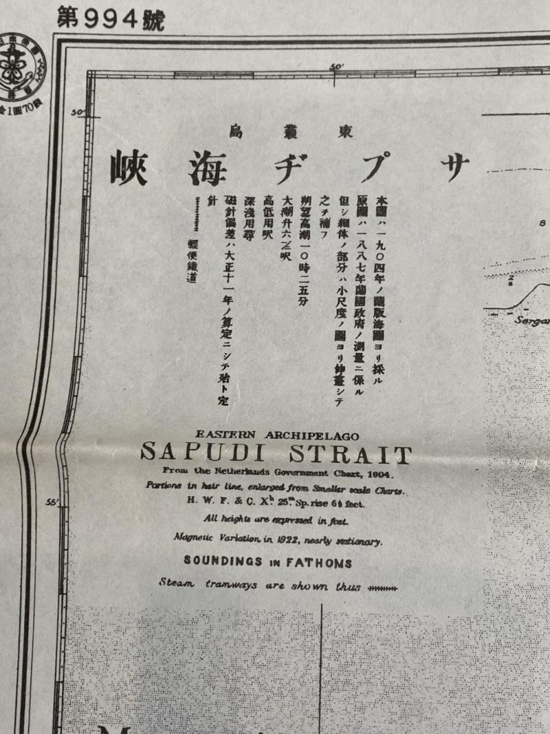 This is a very nice Japanese No.994 map of the Sapudi Strait, looks to be dated 1922.