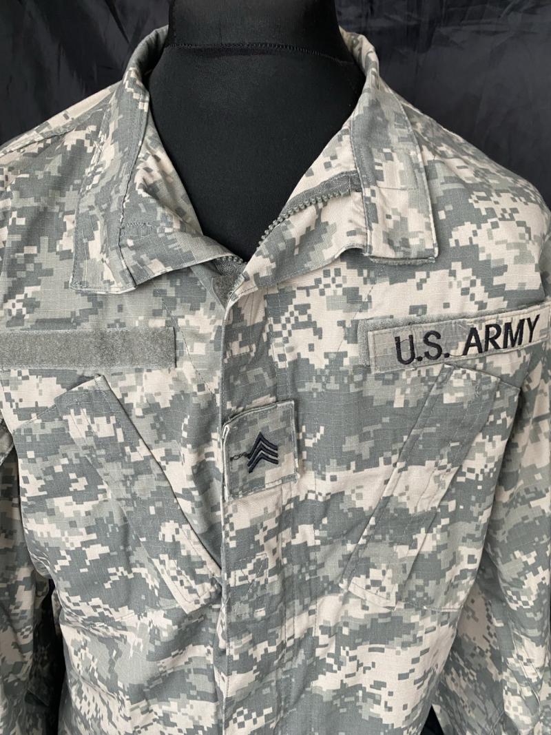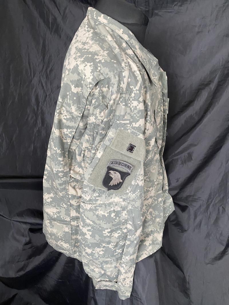 This is a very nice U.S. Army ACU shirt in the ACU camo pattern which is a size X-Large-Regular. This one also comes with various patches like the Airborne and the 52nd Ordnance Group patch.
