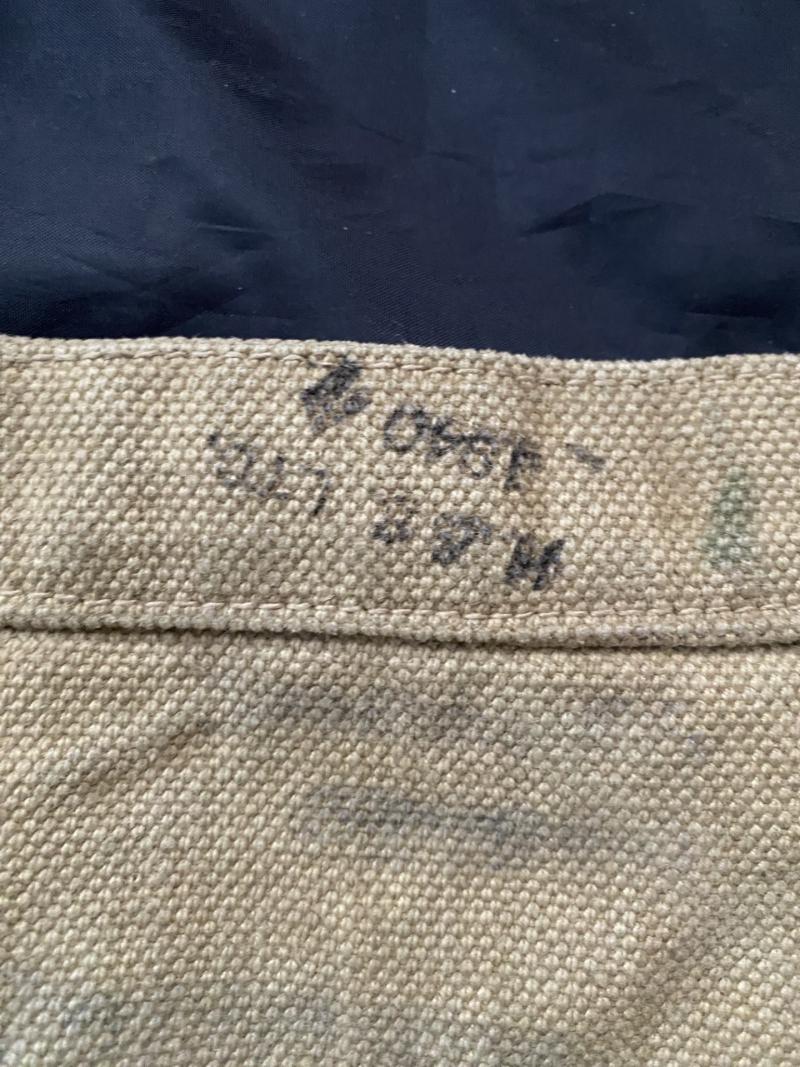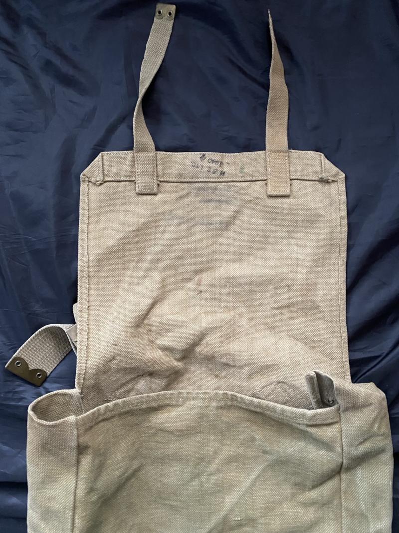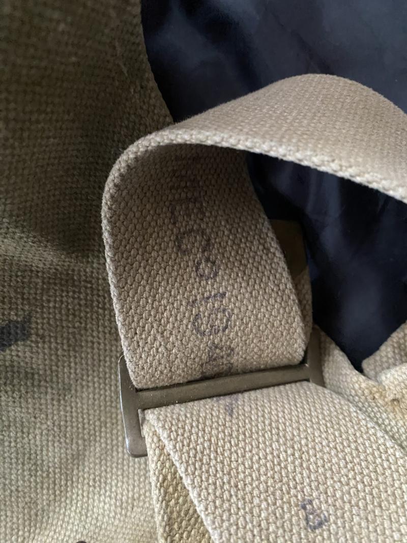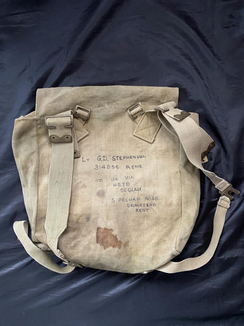 This is a nice large 37 pattern canvas bag with date 1940, with both its straps in place. On the back there is writing on the back of "Lt G.D. Stephenson 314856 REME, to the UK Vis HBTD Deolali 5Pelham Road, Gravesend Kent".