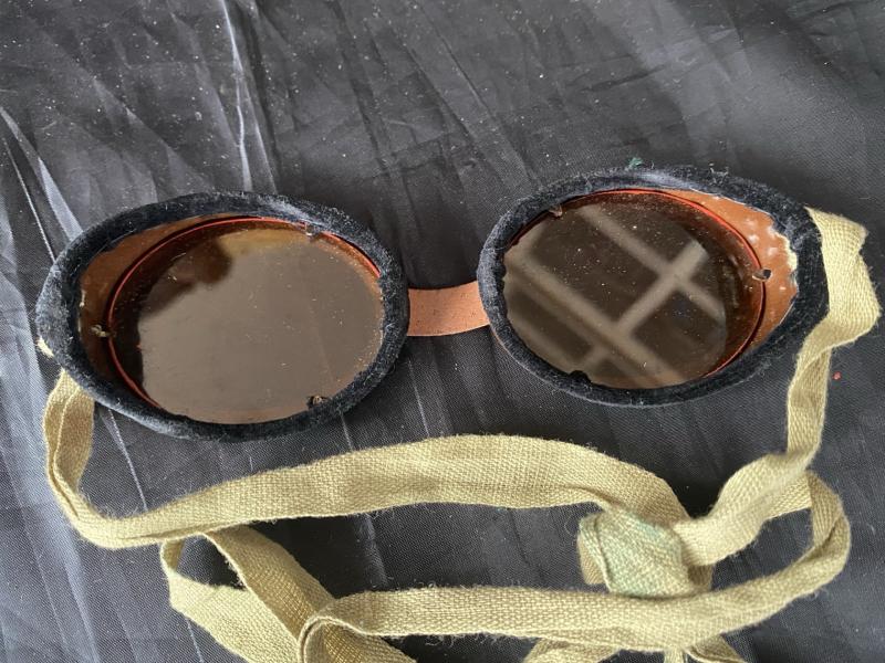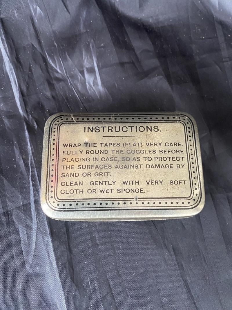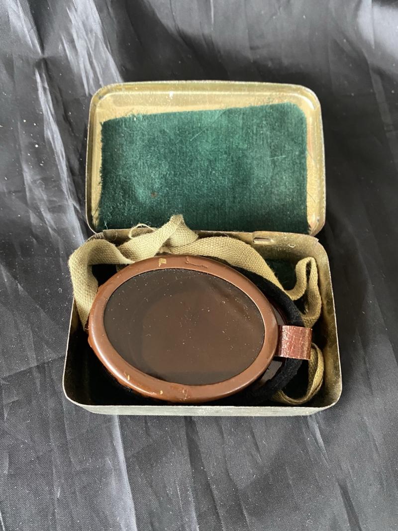 This is a nice pair of WW2 British Army Dust goggles in its original tin case.