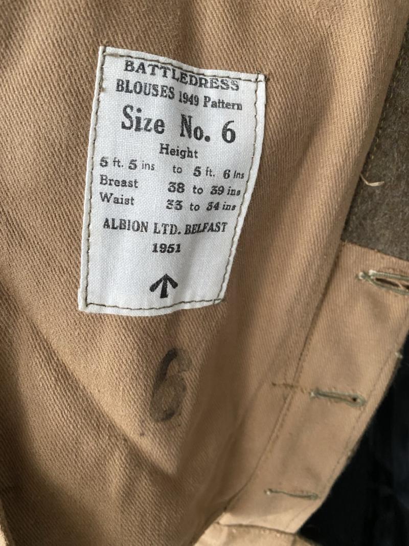 This is a very nice British 1949 Pattern Battle Dress Blouse which is a size 6 and made by Albion Ltd Belfast in 1951.