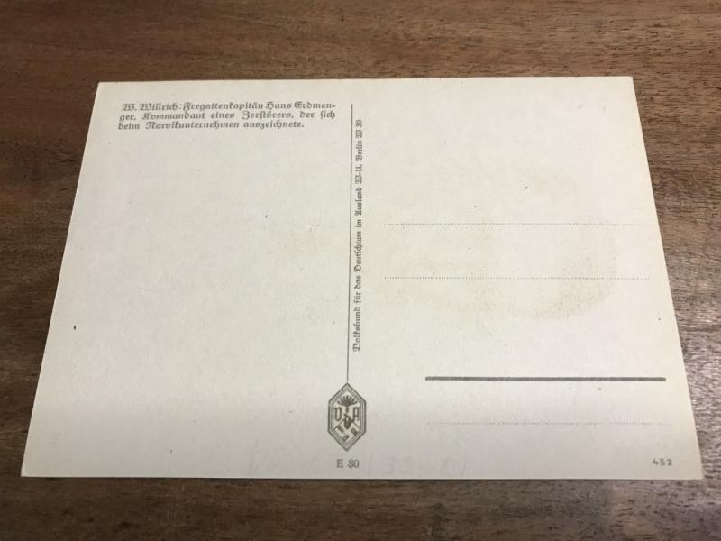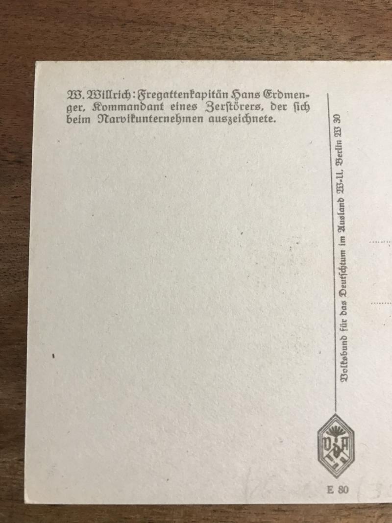 POSTCARD OF FRIGATE CAPTAIN HANS ERDMENGER