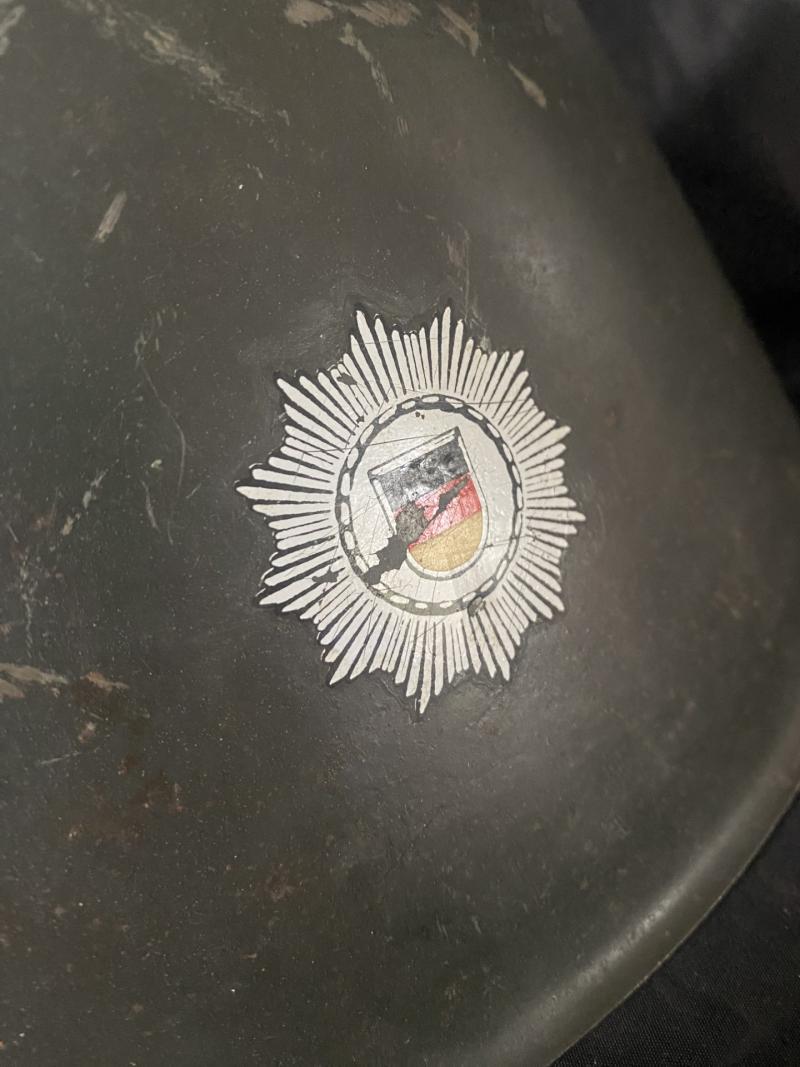 This is a very nice German DDR M56 Volkspolizei Helmet with the Single Decal on the side, this is complete with its liner and chin strap. Nice type of the Post War Helmets.
