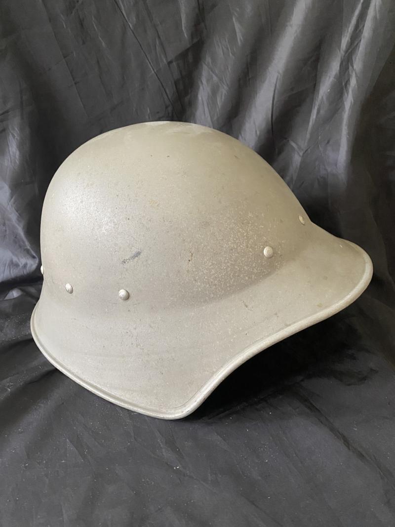 This is a very nice Swiss M1918-43 Brandweer helmet, this one is made from what looks like alloy, this one is fitted with a canvas sling, a nice one to add to the collection of Helmets.