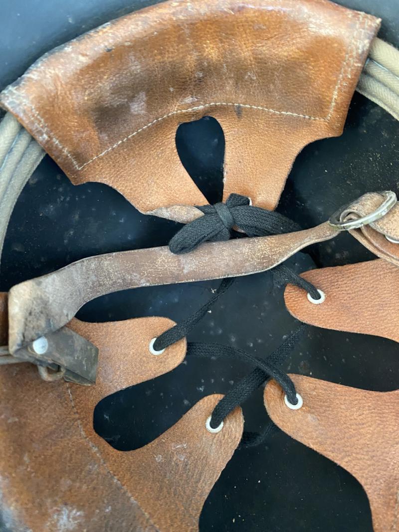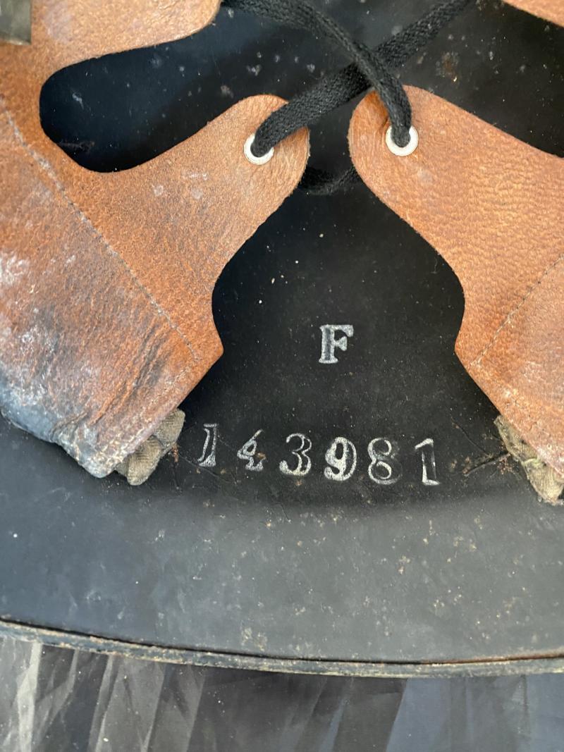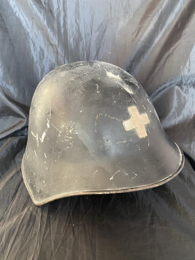 This is a WW2 Swiss M1918-M1940 helmet with the stamping F 143981 on the inside, there are scratches to the outside of the helmet, the liner and chin strap are in nice condition, a nice one to add to the collection of helmets.