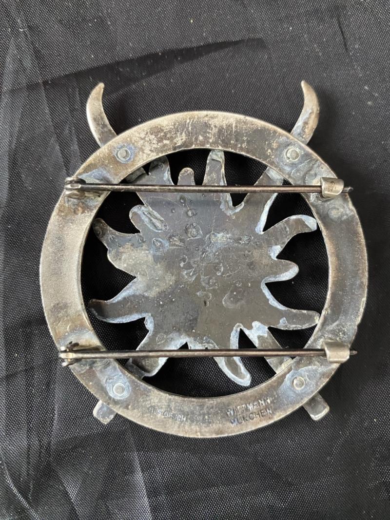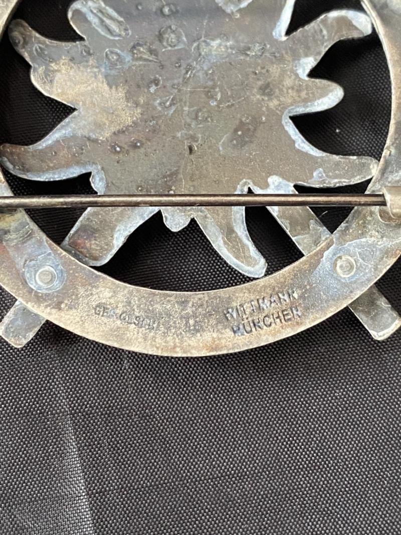 This is a nice WW2 German Hitler Youth Fuhrer Ski Badge with the makers Wittmann Munchen, both pins on the back are also good.