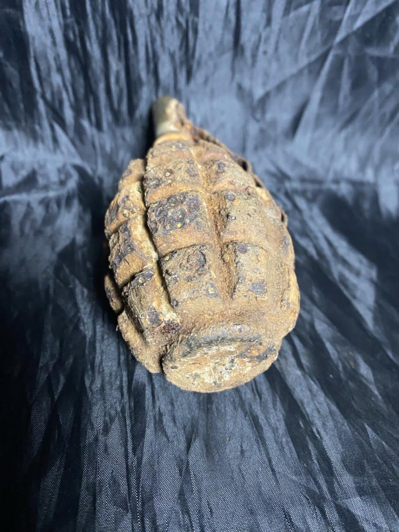 This is a nice semi-relic F1 Limonka grenade (inert) which still has its spoon and pin. U.K sales only.