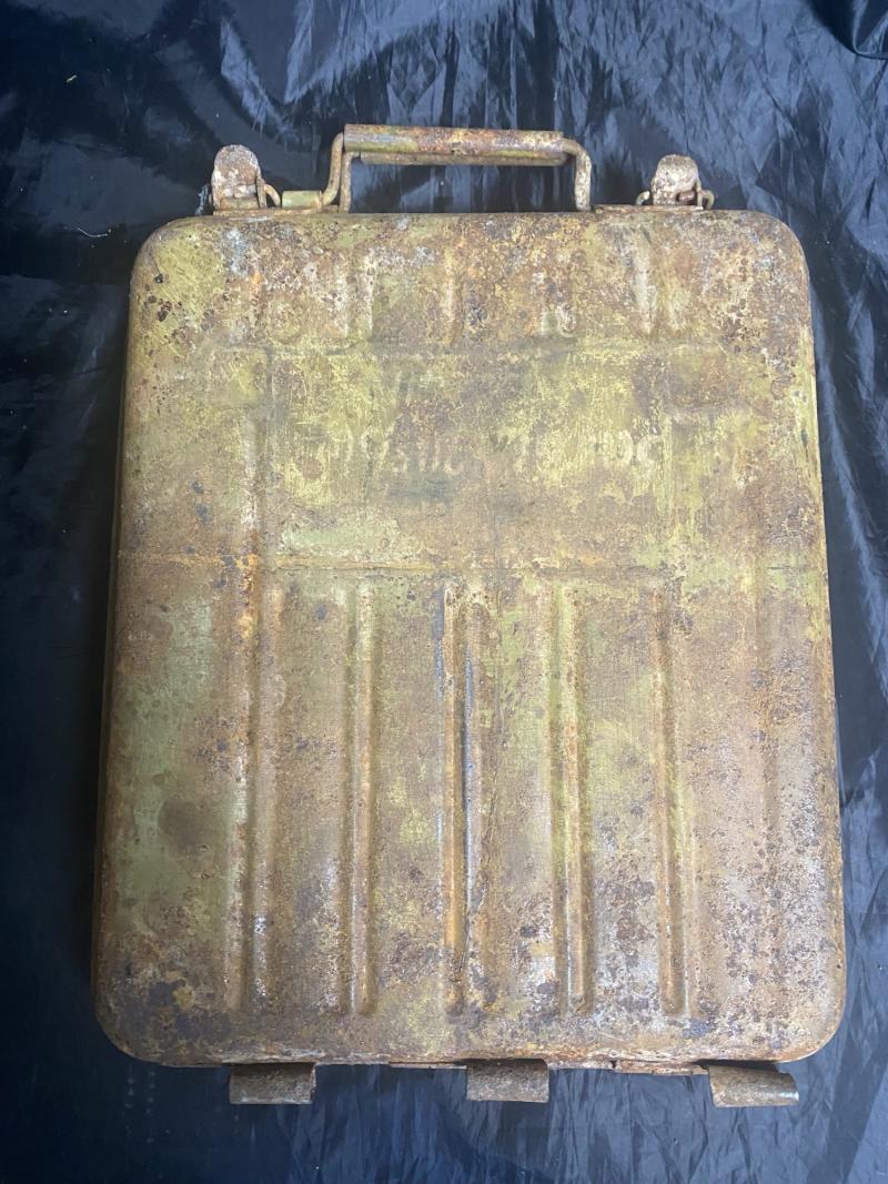 This is a WW2 German 3.7CM shell transit case, still left with some of its original paint, also the latches still work, but it has obviously seen better days, this would make a good display piece.