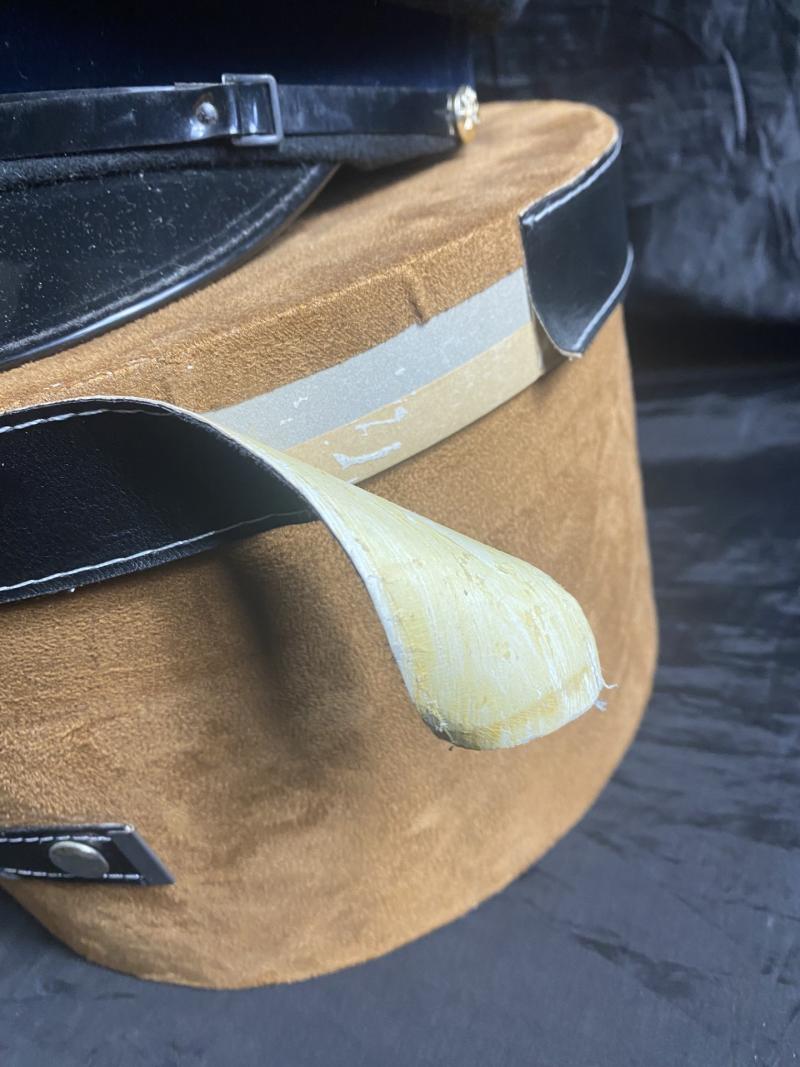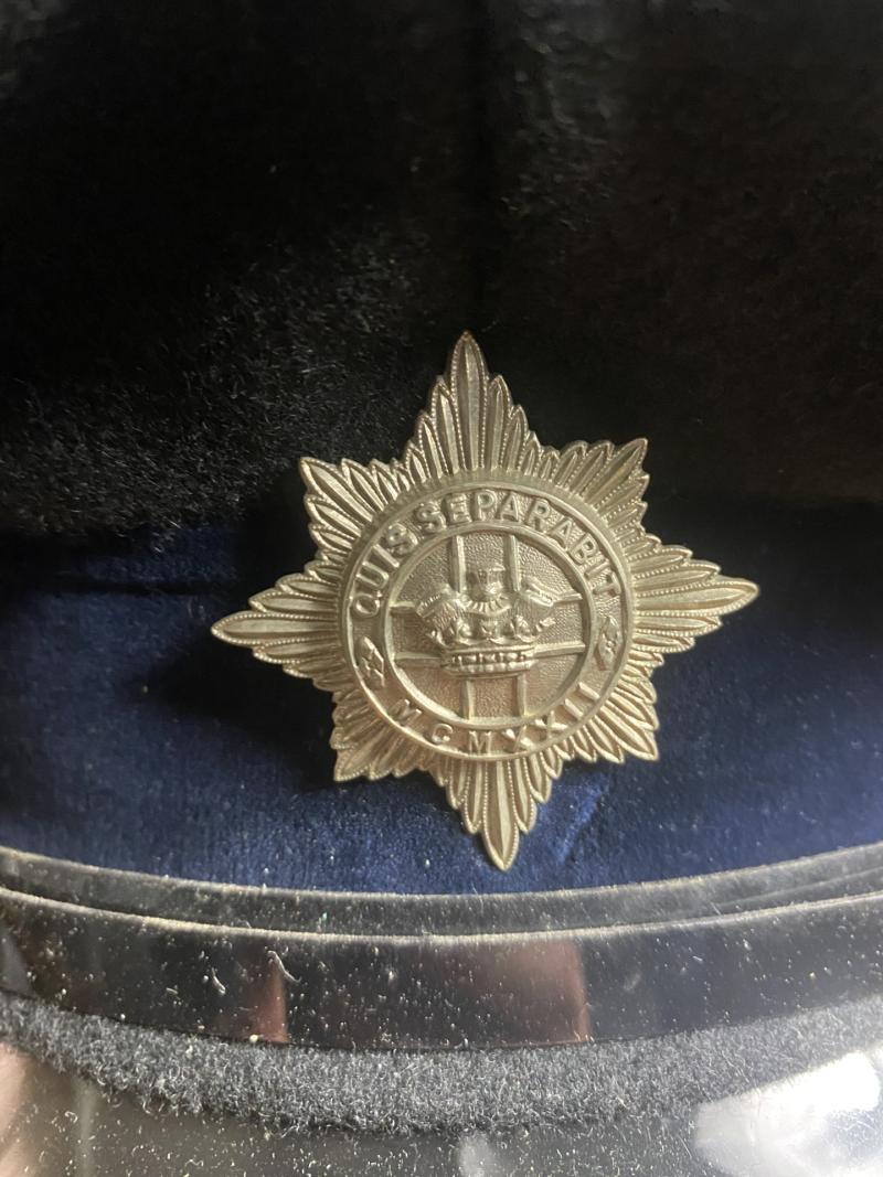 This is a nice British Coldstream Guards Parade cap in its box, the cap is a size 59 and in excellent condition, the black trim on the box is coming away otherwise the box is in good condition.
