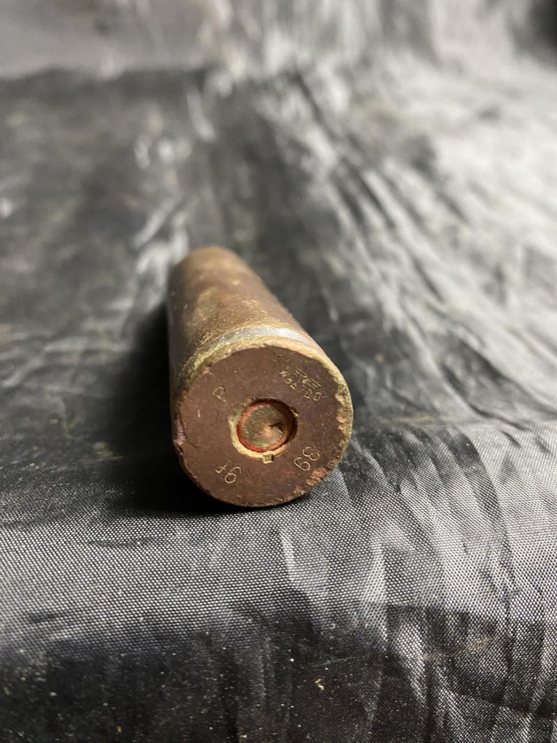This is a very rare WW2 German 1939 dated Panzerbuchse Anti-Tank training round (inert), you can see the wooden head inside but it has been pushed through. UK sales only.