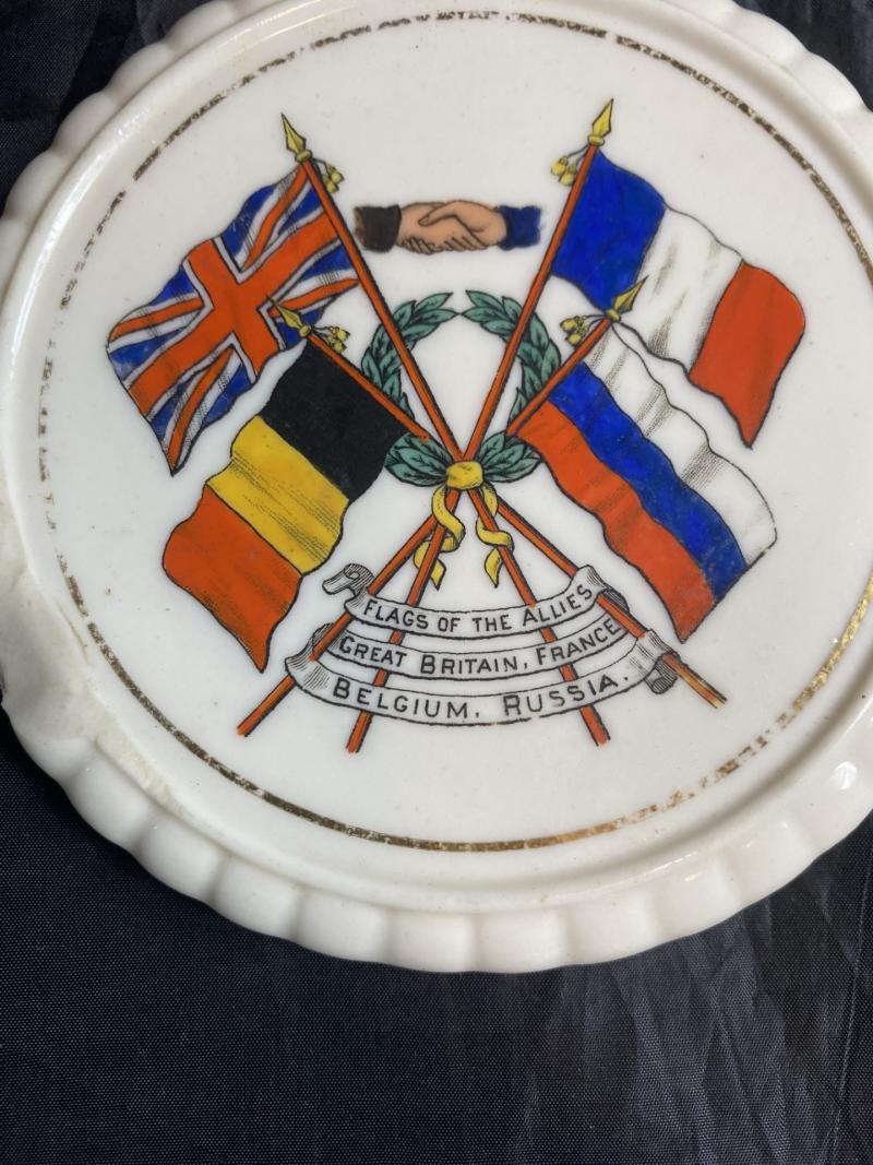 This is a WW1 Flags of the Allies Porcelain plate, Approx. diameter is 12cm, there is a small chip in it, otherwise in nice condition.