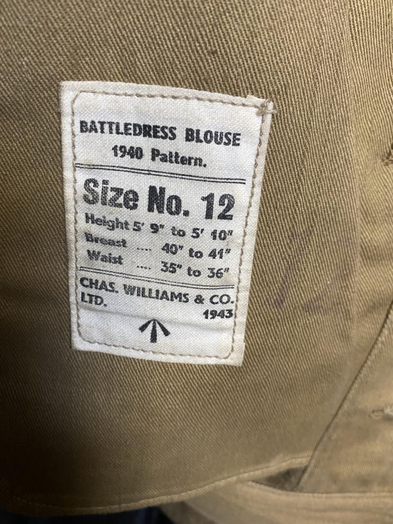 This is a very nice WW2 British Royal Artillery 1940 Pattern Battle dress jacket and scarce trousers, the blouse and trousers are both a size 12, the blouse has the makers Chas Williams & Co with the date 1943, also fitted with its full insignia which includes Sergeants designation and surveyors qualification patch.