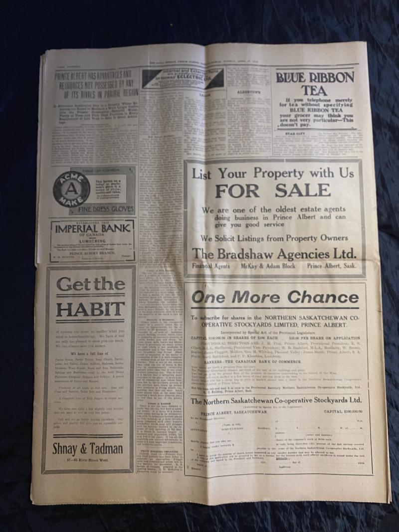 This is a 1919 dated Prince Albert Herald newspaper which talks about the Peace Conference and has other stories.