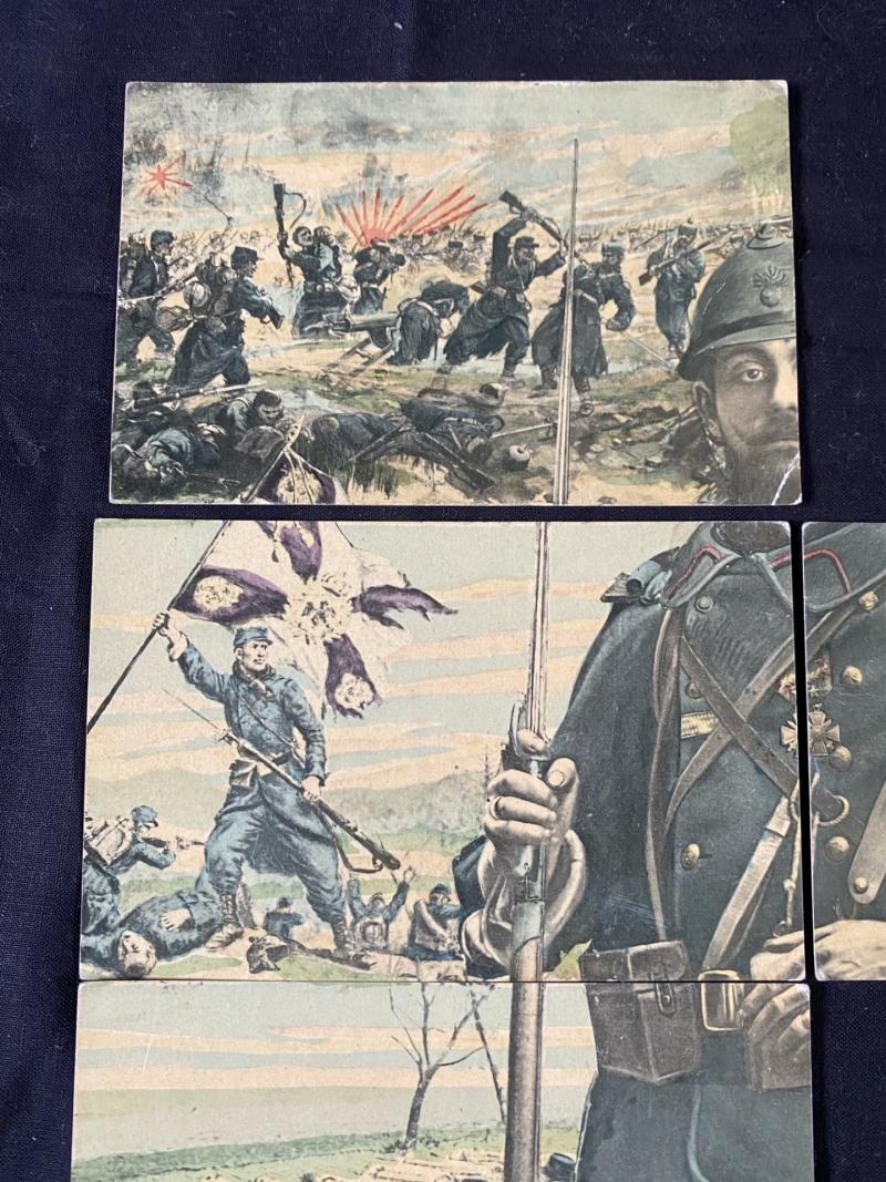This is a set of 5 French postcards which form a soldier when put together, but unfortunately a few has been used and no longer with the set, (but then that is what they are for to be used).