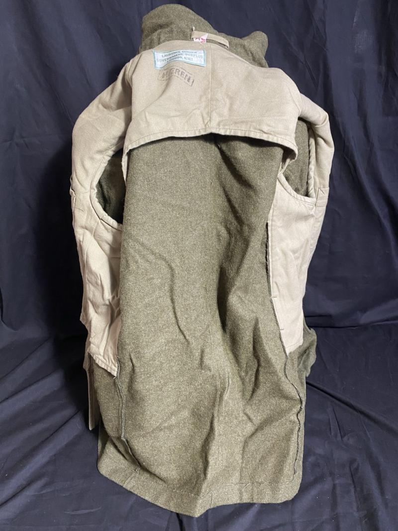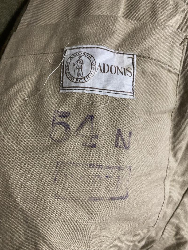 This is a very nice Norwegian Army Tunic with its original belt, made by Adonis Confection, with original stamps inside, its a good size for a mannequin and in great condition. Approx. 21" across the chest flat and 19" under the arm.