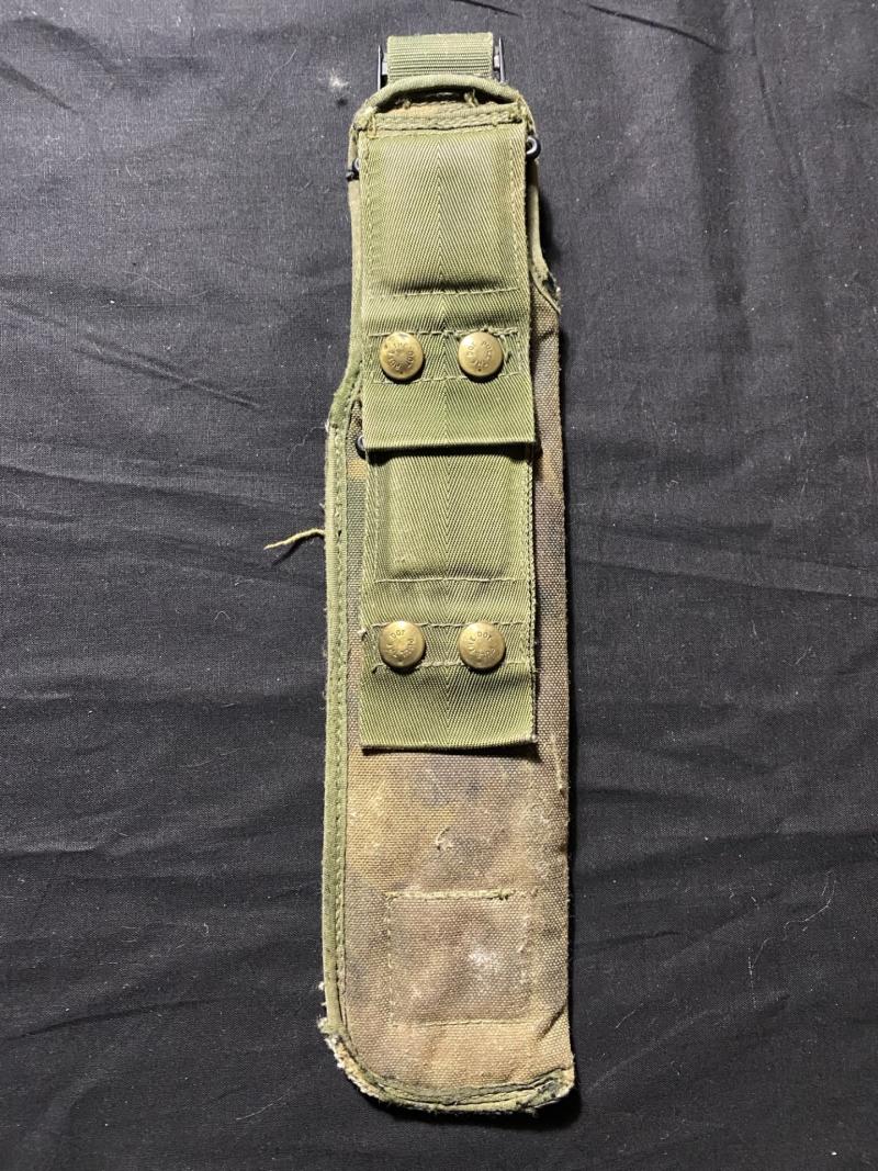 This is a well used SA80 Bayonet frog which has the name Magdalene and some other markings.