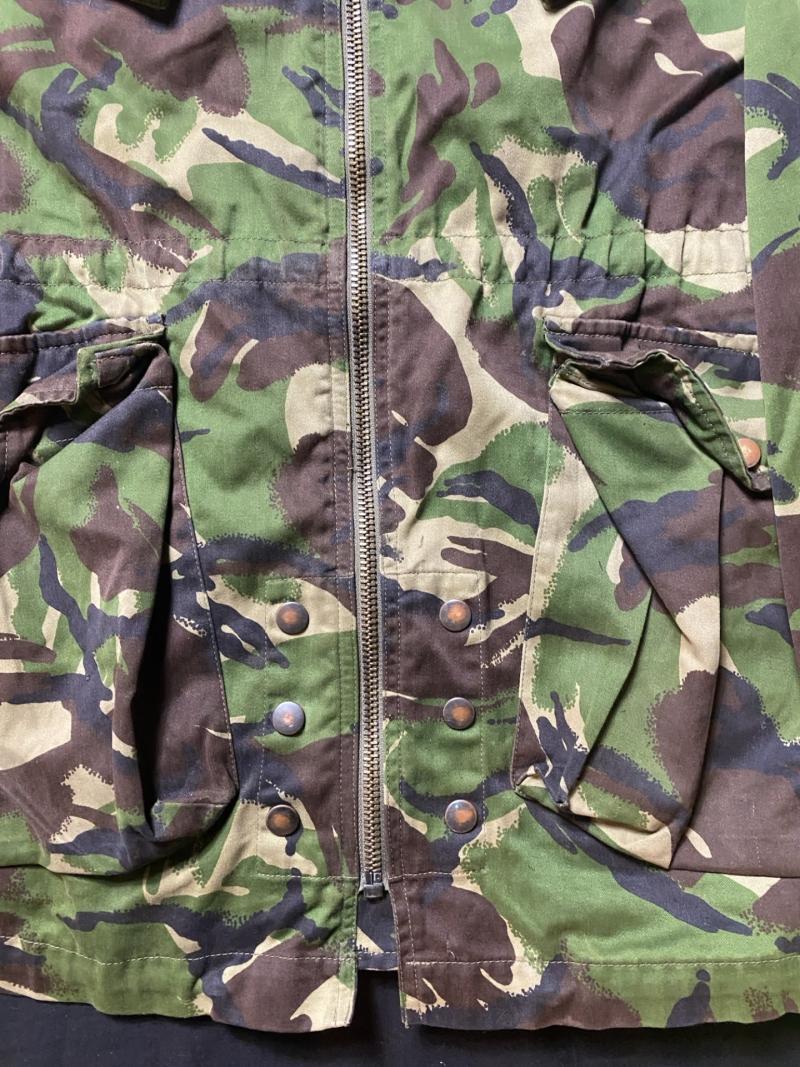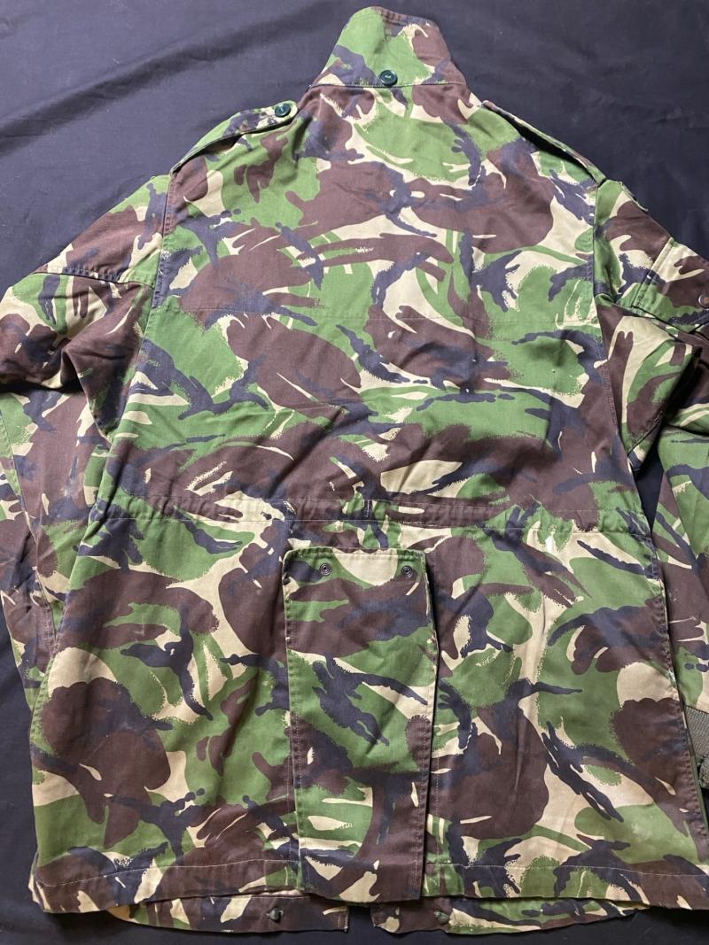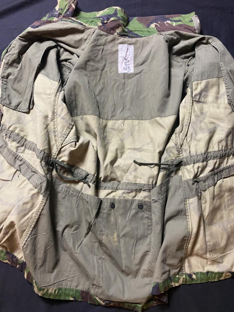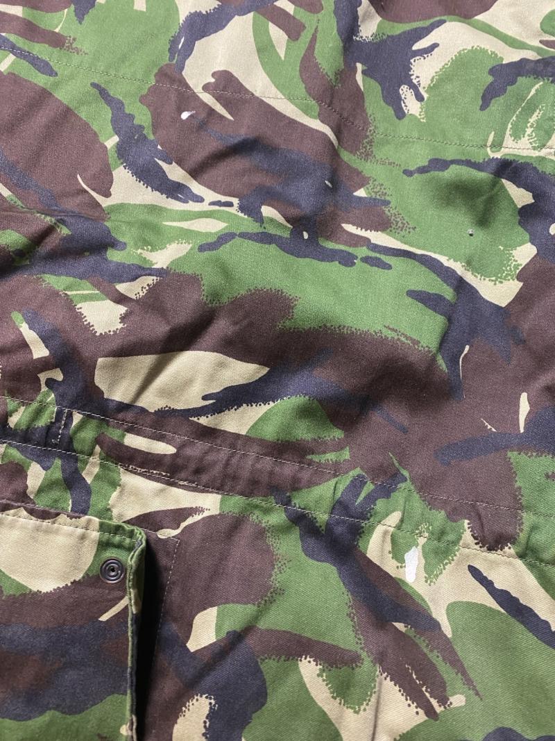 This is a British Army 95 Pattern DPM Paratrooper smock with some straining to the smock, with zips and buttons all in place. The label has faded, Approx. size 22" across the chest flat and 28" under the arm, some wear to the cuffs.