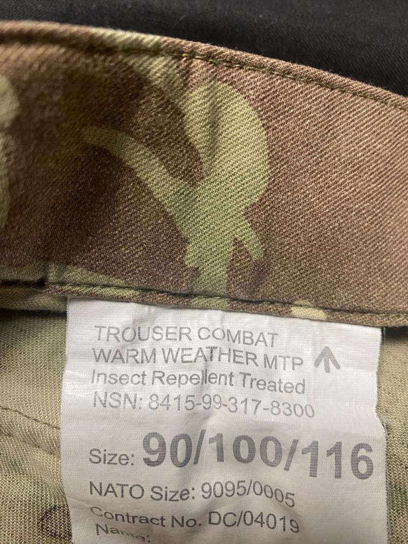 This is a nice pair of British MTP warm weather combat trousers with working zips and buttons, This is a size 90/100/116.