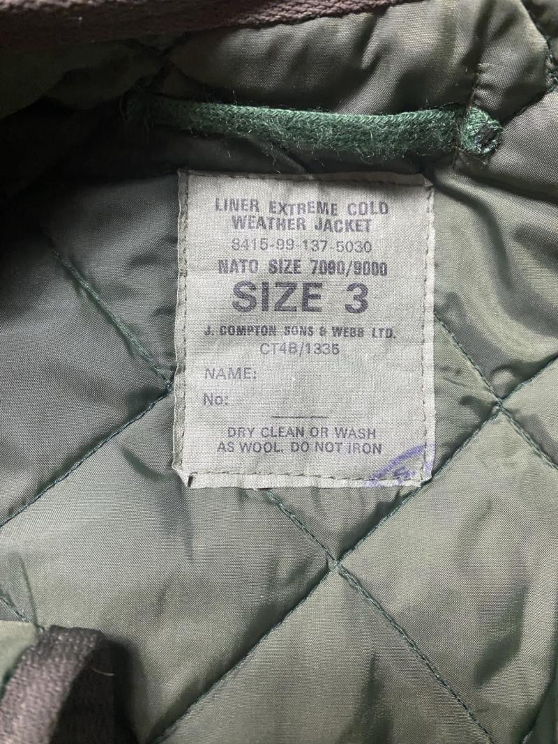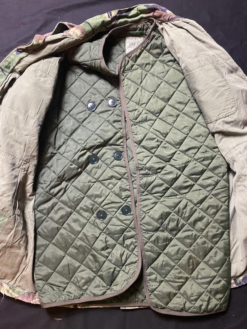 This is a nice British 68 Pattern combat smock with a Extreme cold weather liner inside, the smock is missing a button on the bottom right hand side, the liner is a size 3 and the smock is a size 9.
