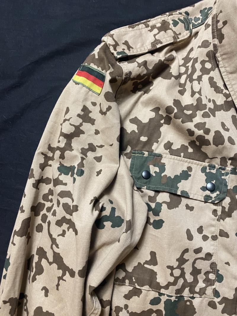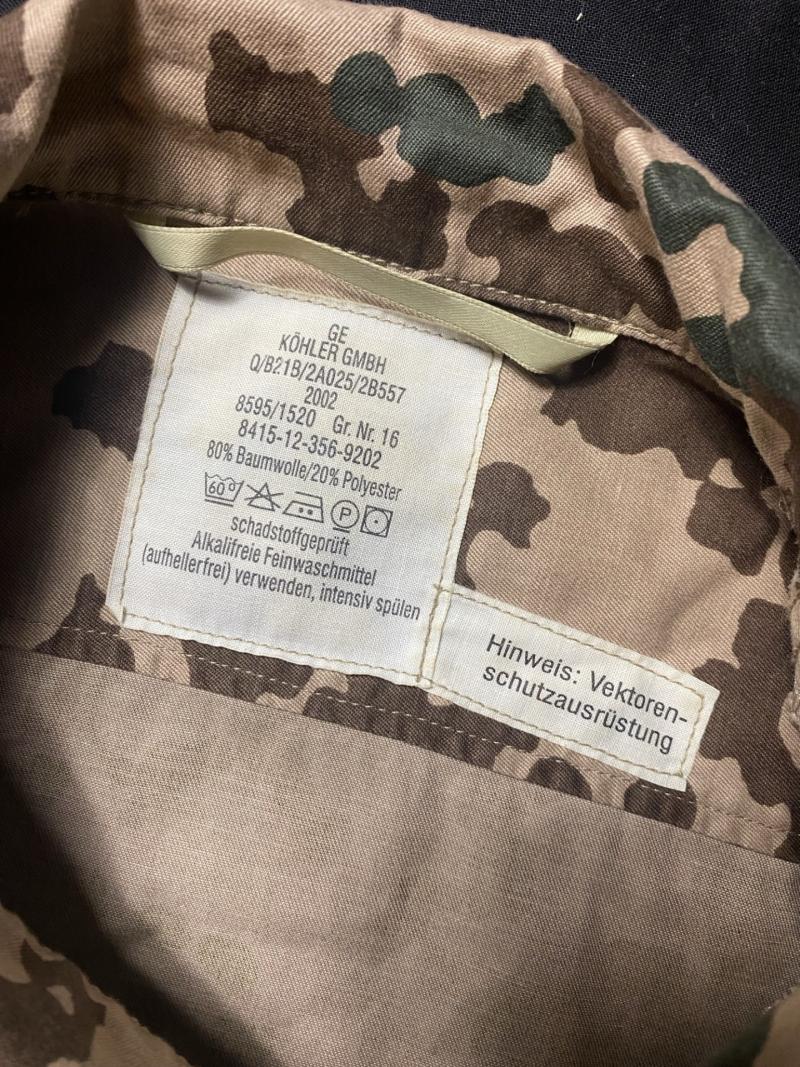 This is a nice German Military Tropentarn camo field shirt which is dated 2002. Approx. size 23" across the chest flat and 22" under the arm.