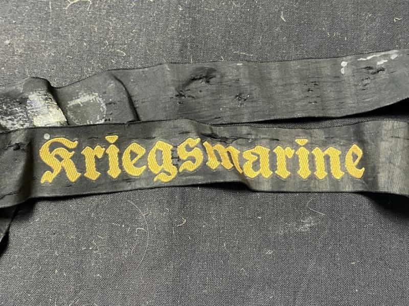 This is a WW2 German Kriegsmarine cap tally with some wear to it.