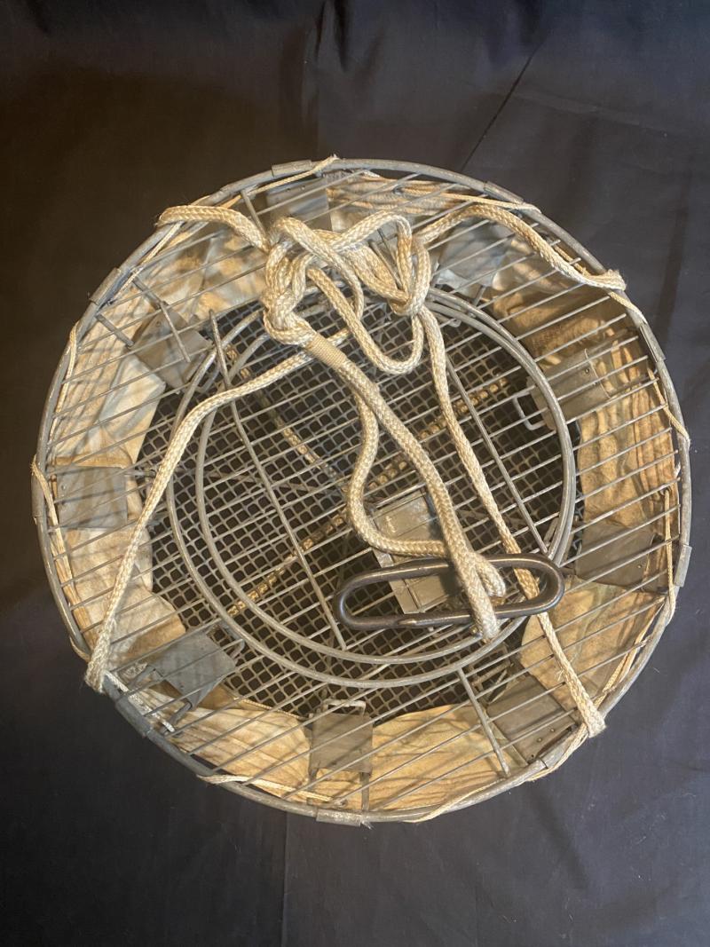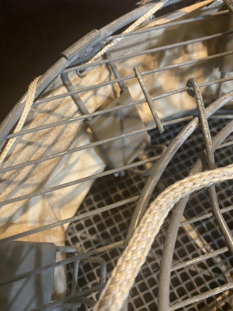 This is an original WW2 U.S. Airborne Signal Corps drop cage which was designed to carry eight homing pigeons and is complete with the hanging suspension lines and hook.