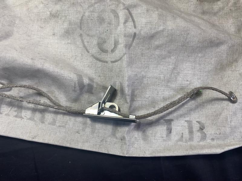 This is a nice WW2 U.S. M-9 Mail bag which still has its rope tie.