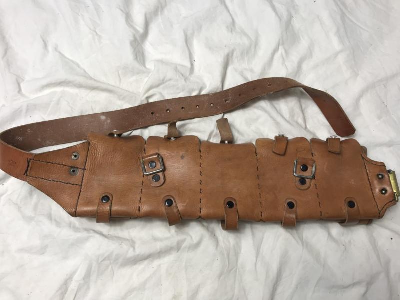 This is a very nice leather bandolier for the Swedish Carl Gustaf M/96 "Mauser" rifle. For between 100 and 125 rounds in 5 round clips. Soft leather. The leather strap is stamped with the crowns.