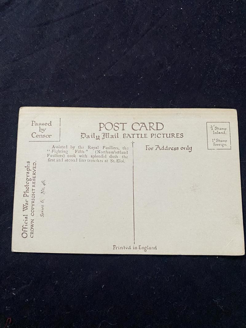 This is a postcard of troops from the Northumberland Fusiliers after the battle of St Elqi.
