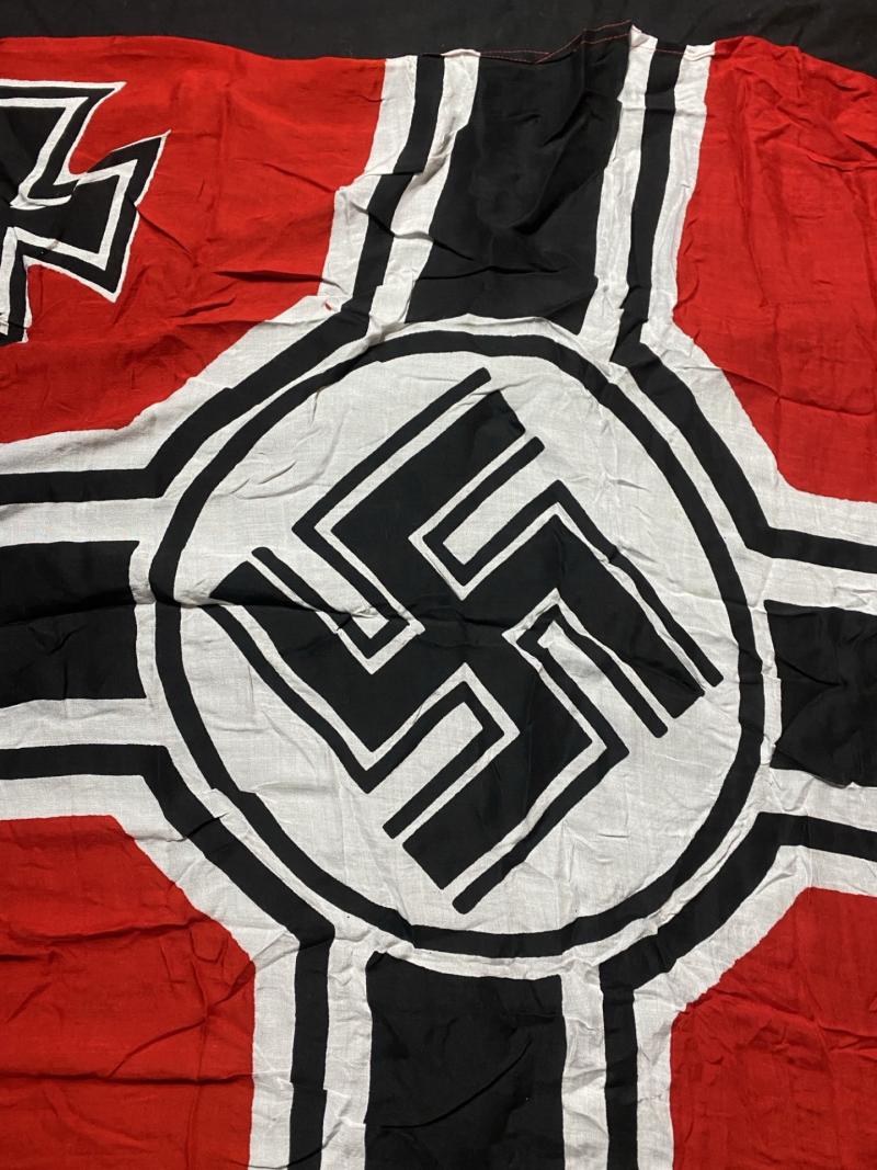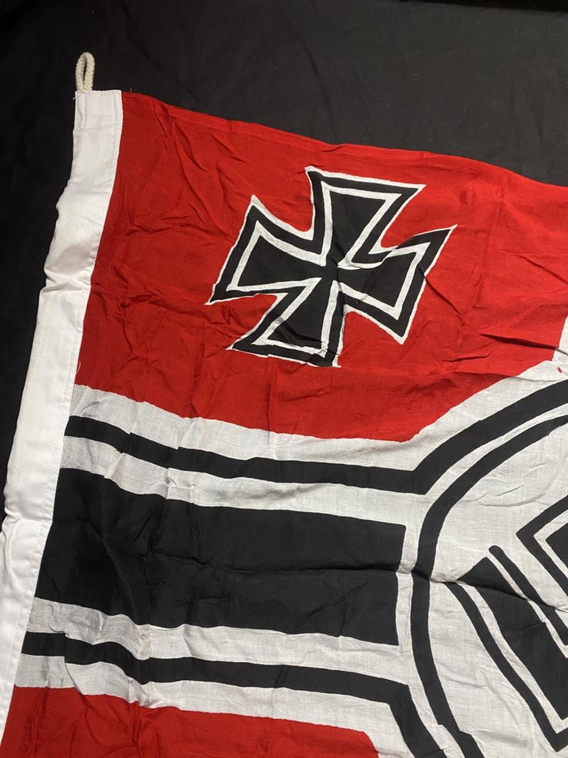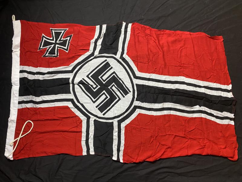 This is a very nice reproduction WW2 German Kriegsmarine flag which measures Approx. 35" wide and 58" long.