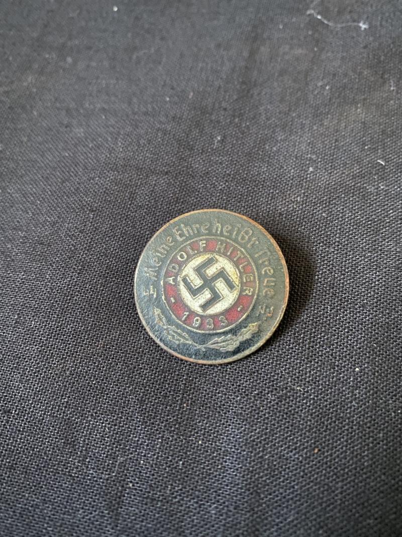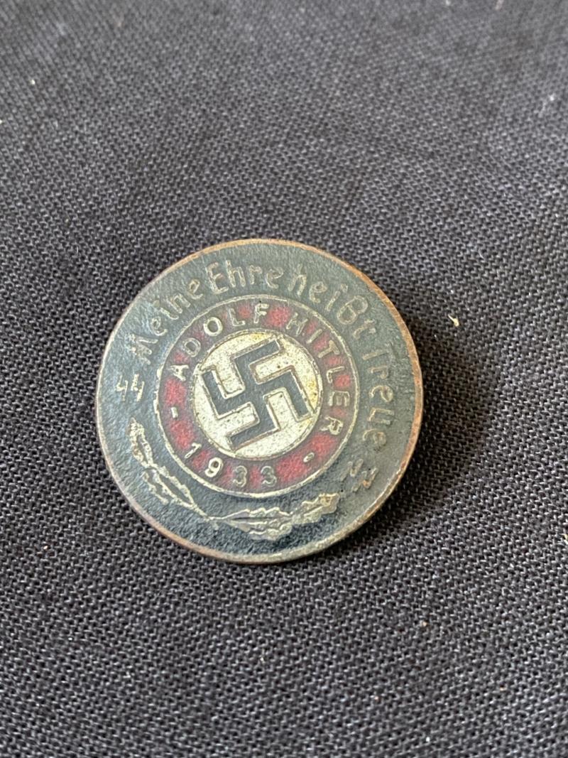 This is a WW2 German Waffen-SS NSDAP Membership badge with Meine Ehre Heist Treue Adolf Hitler 1933, the pin is in tact, but wear to the badge itself.