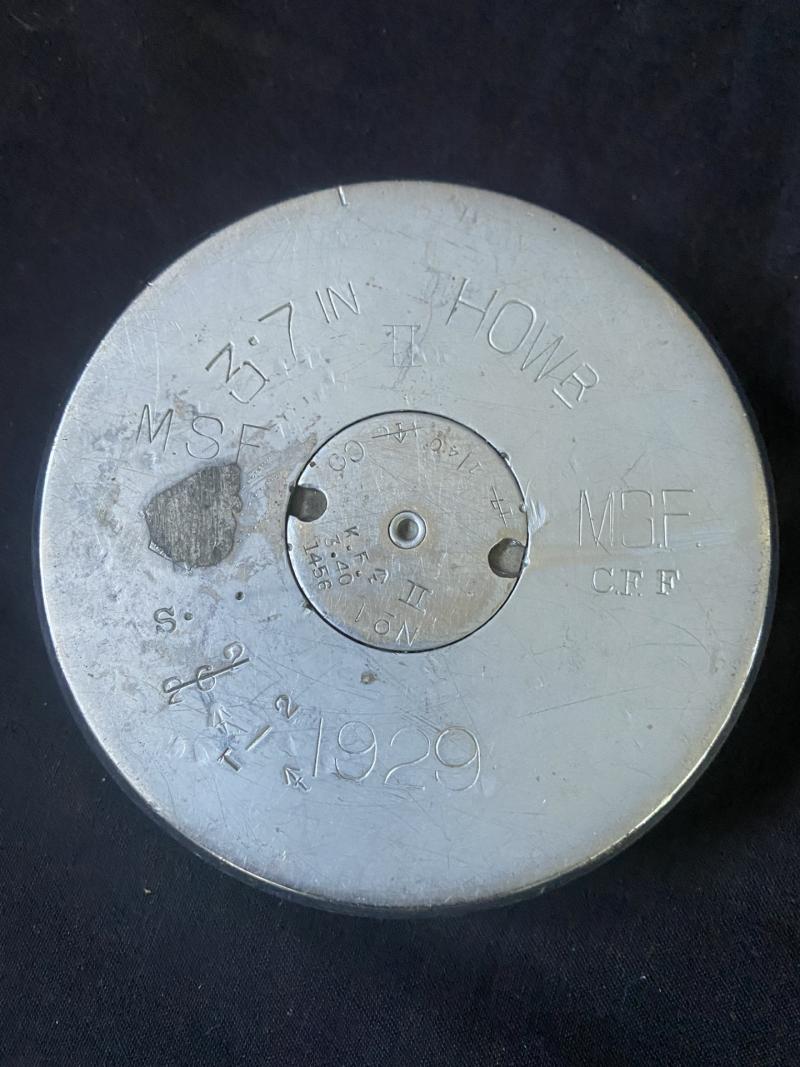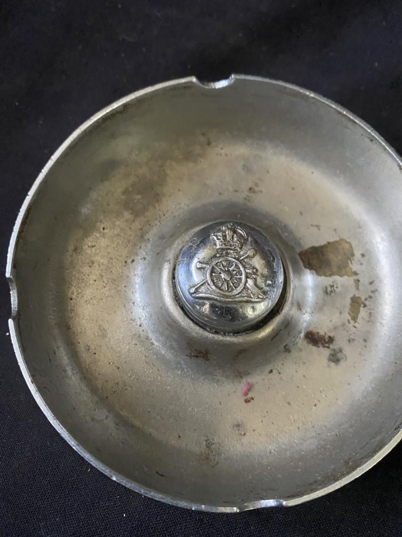 This is a Ashtray which has been made form a 1929 dated 3.7" Howitzer shell where someone has place a Royal Artillery badge in the centre.