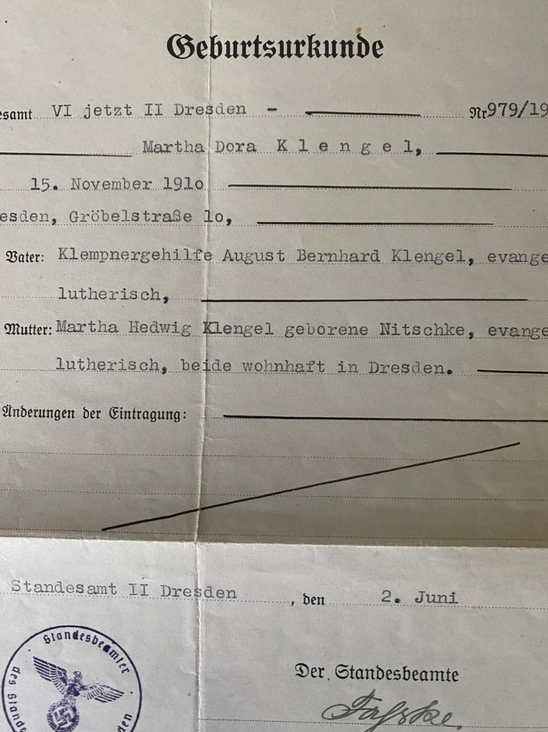 This is a WW2 German Birth Certificate where Martha where this was made in Dresden in 1942.