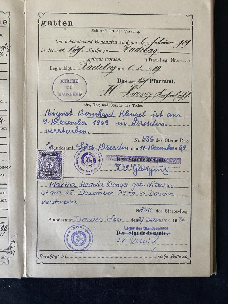 This is a German Family Register book which belong to the family of the Klengel with other documents inside.