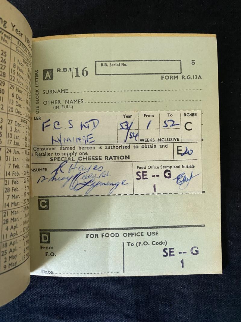 This is a 1953-1954 Ration Book which belonged to a Ralph Hayes.