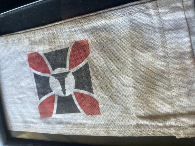 This is a Kuffhauserbund 3rd Reich veterans organisation armband which is framed.