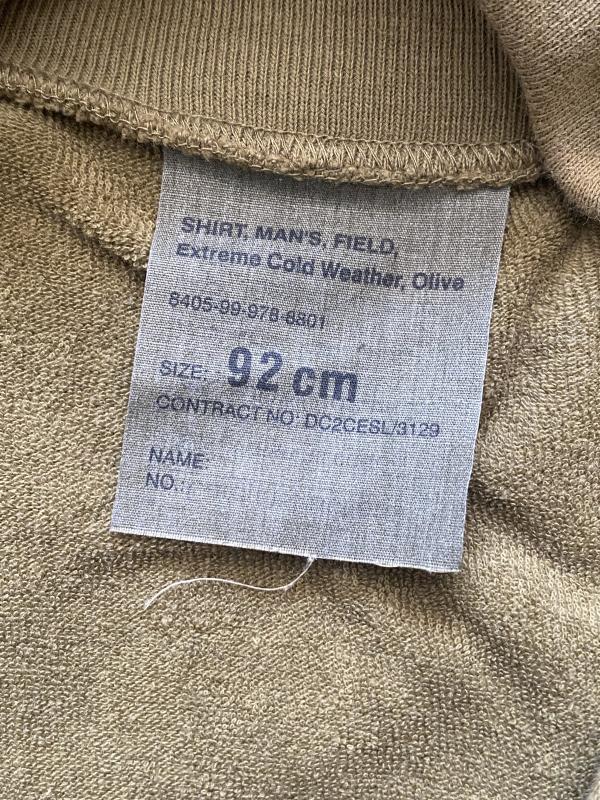 This is a British Army Cold weather shirt, size is 92cm , Approx. 40" chest and 24" under the arm.