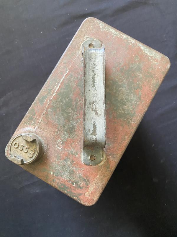 This is a nice WW2 Esso fuel can which is dated 6 45 on the bottom, still fitted with its Esso Brass cap.