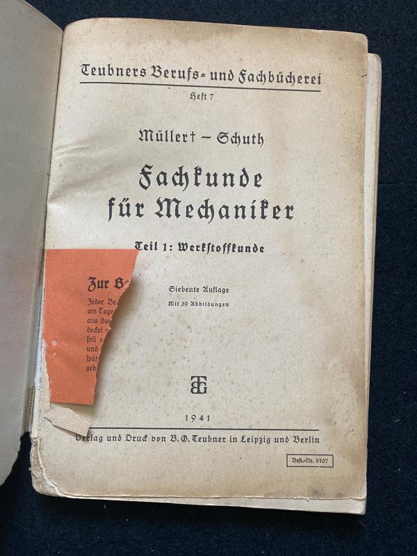 This is a WW2 German 1941 dated book called Technical knowledge for mechanics.