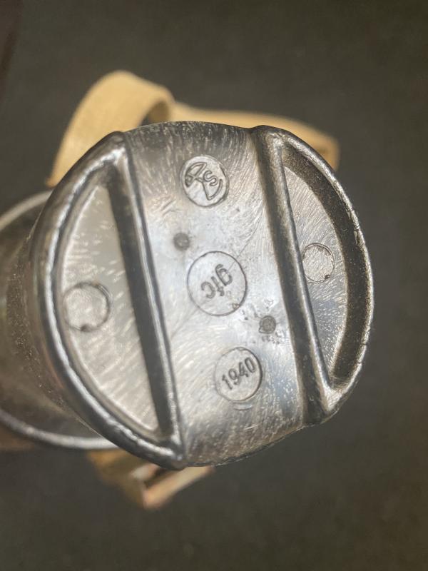 This is a nice WW2 German Tropical DAK water bottle which is stamped D.R.G.M H.R.E 42 on the back, also comes with its plastic cup which is dated 1940, also the lid still has its rubber seal inside.