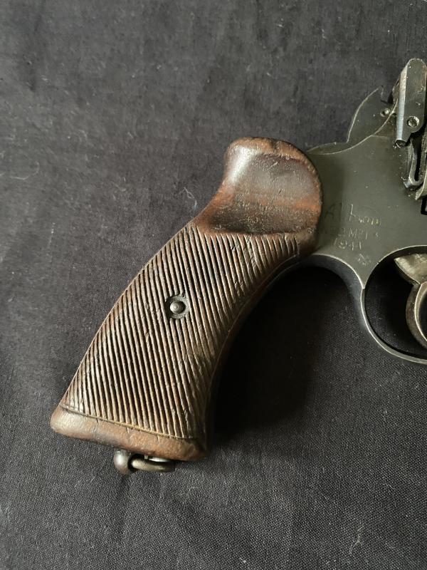 For sale to customers outside the European Union Only. This is a No2 MK1 revolver with the spurless hammer and finger groves in the hand grip. This version of the No2 MK1 is more commonly referred too as the Tankers revolver as it was solely issue issued to armoured and aircrews. The vast majority of the No2 MKI revolver where manufactured at the Royal Small Arms Factory at Enfield. However due to wartime production necessities subcontractors where used. This example is in excellent condition and was produced by one of the rarer manufacturers Albion Motor Company in Scotland, who produced the revolver from 1941 to 1943. This example is dated 1941 and is a pre-1995 deactivation with clear cylinders. For Non EU Sales Only. However can be re-deactivated to the current EU specification. Please email before making purchase.