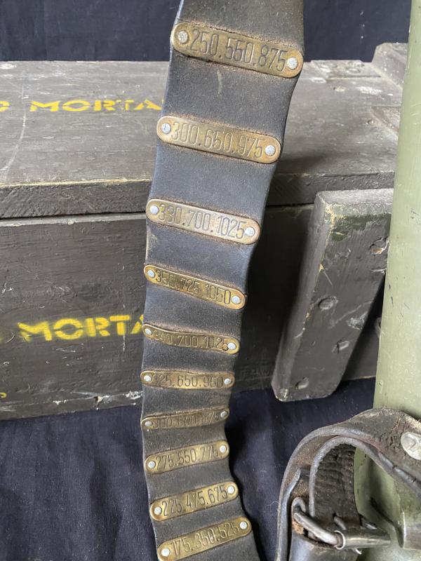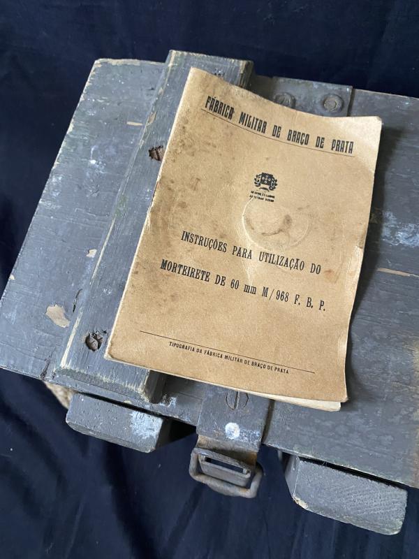 This is a very nice deactivated Portuguese FBP M968 60mm Mortar in its original crate which also comes with its leather sling and end cap, The latches on the crate work fine but the carry handles on the outside are in tact as can be seen in the pictures. This would make a great display piece. UK sales only.