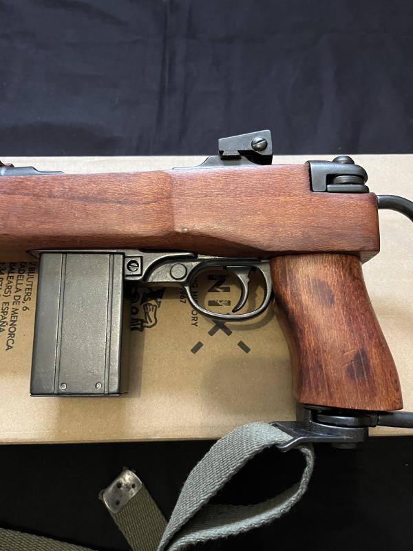 This is a nice replica Denix replica of the WW2 M1 Para Carbine with the folding stock, This one has also been fitted with a sling and it is able to cock and dry fire. For UK Sales Only. Please email before making purchase.