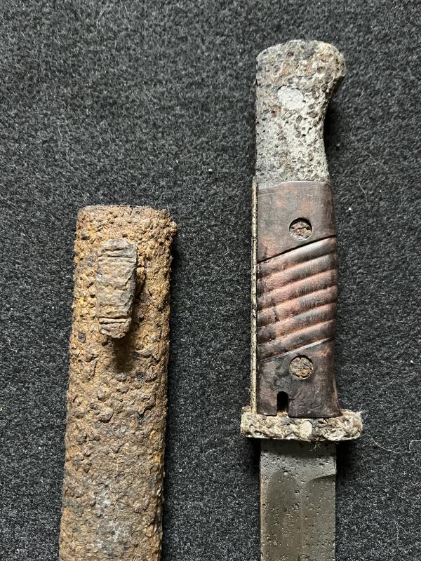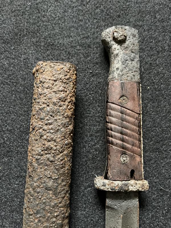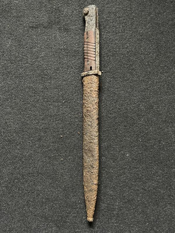 This is a nice relic WW2 German K98 Bayonet which still has its Bakelite grips and scabbard. This is an age restricted item. Proof of age must be provided. U.K. Sales Only.
